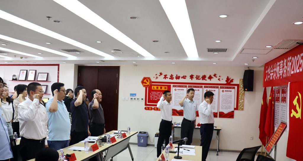 會(huì)議在莊嚴(yán)的《國(guó)歌》中拉開序幕。黨委書記梁春同志帶領(lǐng)新黨員進(jìn)行入黨宣誓,全體與會(huì)黨員重溫入黨誓詞。鏗鏘有力的誓言,表達(dá)了全體黨員對(duì)黨的忠誠(chéng)信仰和堅(jiān)定信念,激勵(lì)大家永葆初心、勇?lián)姑?,在新時(shí)代征程中奮勇爭(zhēng)先。